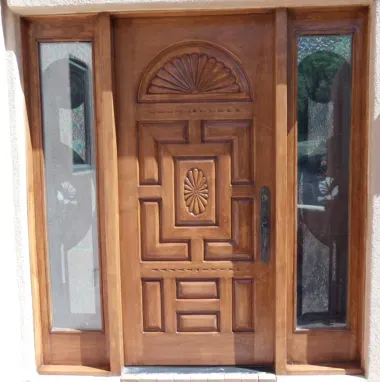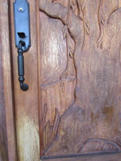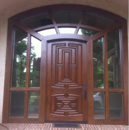 • Exterior Entry Door, Frame and Sidlights with Hand Carvings Refinish and Repair