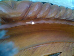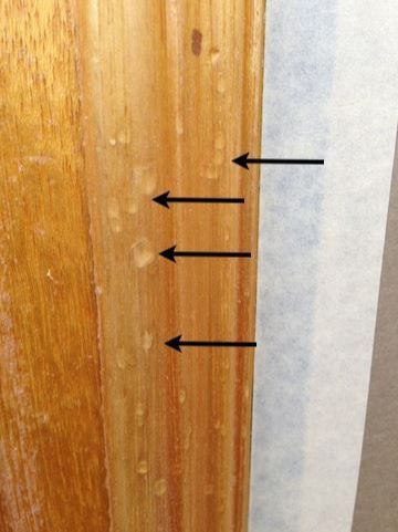Notice the gouges around the hardware and the lousy finish- all the result of improper preparation.
