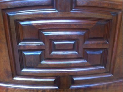 • Special Considerations: Re-veneered raised panel due to cracking
