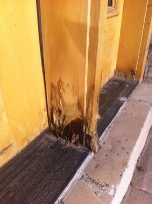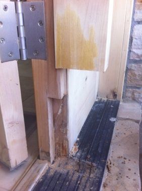 This was an interesting and a bit unusual project for us in that we usually don’t see rot this bad in an entry way unit. With this owner, challenges over the recent past had prevented them from attending to the door and so rot migrated from the outside of the frame and infected the inside of frame and both sides of the bottom of the door itself.