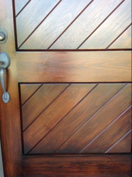 Taking the Common to a Unique Work of Art: I just wanted to show you what we can do with the most common door in the US today. A typical 6-panel vertical fir veneer door can be transformed into a furniture-grade piece of artwork. All our colors are custom created to contrast with the surrounding house color.